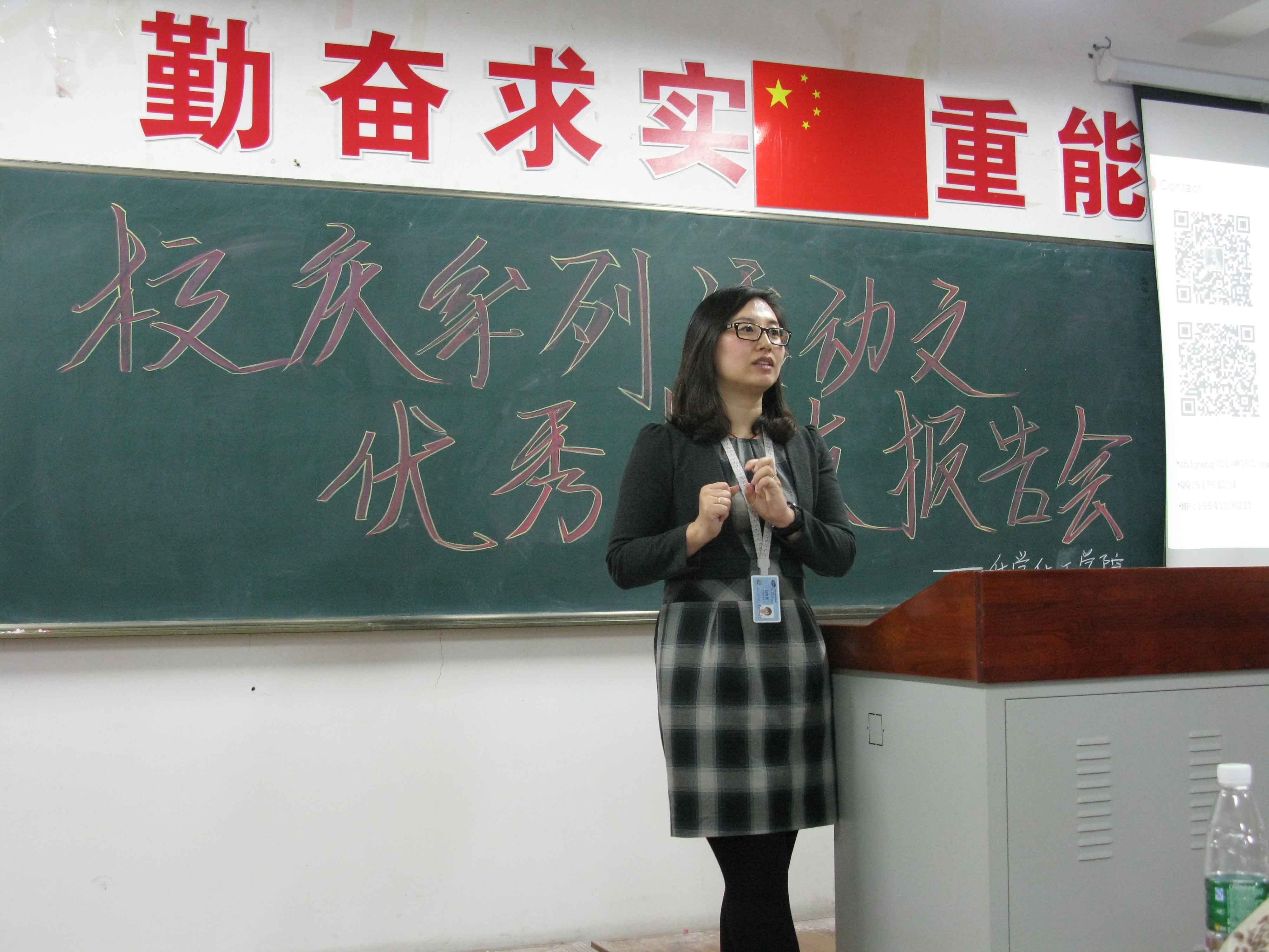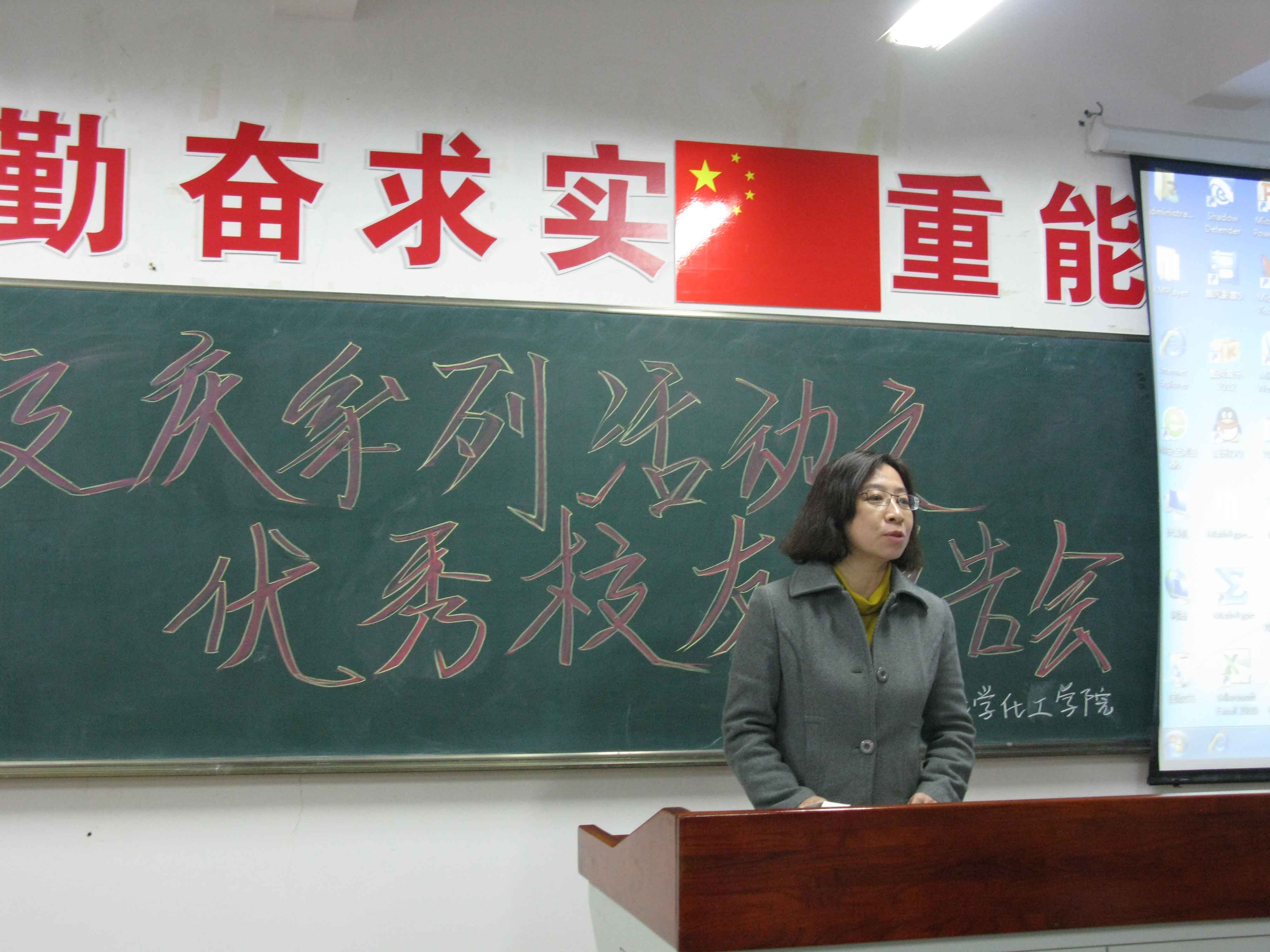 校庆系列活动之优秀校友报告会在理化楼C区411举行,出席本次报告会的嘉宾有我院2002级化学专业毕业生施阳和辉瑞制药公司的吕宜男、吕正军。化学化工副院长杨梅老师,党总支副书记李群老师,王秋老师,金晶老师,吕成伟老师出席了本次报告会。2013、2014级本科生和部分研究生参加了本次报告会。