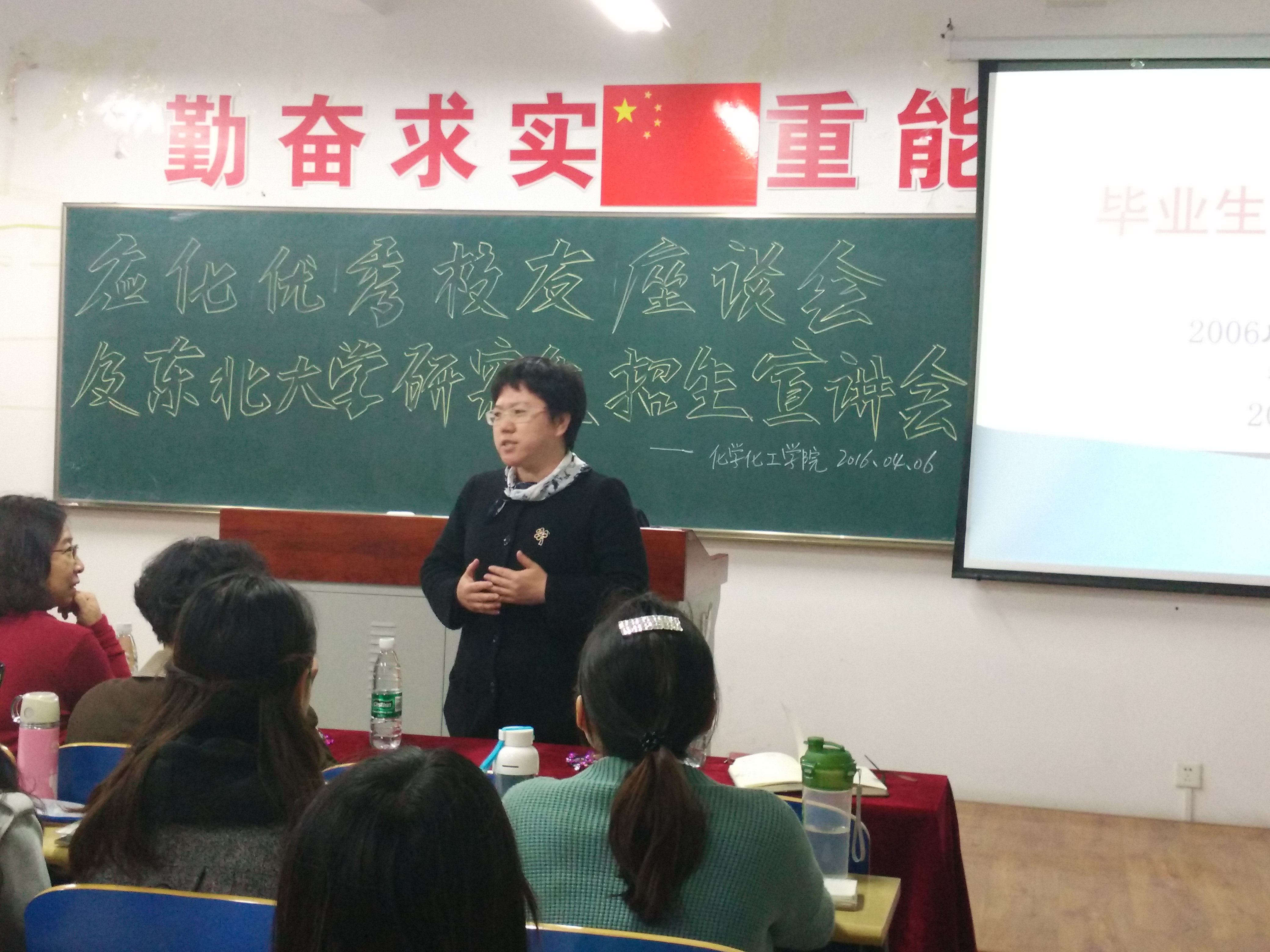 杨春光校友与同学们分享了自己的求学经历及工作经验。她指出,辽师应用化学专业的理论课程、实验课程和实践课程设计非常好,加上老师们认真负责的教学态度,帮助她奠定了扎实的理论基础和实验技能;多样的课外活动增强了她的团队意识和拼搏精神,这些都为她日后的发展奠定了良好的基础和提供强大的助力。同时她还就考研的心态、方法等与同学们分享,并介绍了东北大学招收研究生的详细情况。杨春光校友坦诚的态度、质朴的语言、幽默风趣的例子,使同学们受益匪浅。大家深受鼓舞,踊跃就感兴趣的问题和自己的困惑与校友进行交流,场面亲切而热烈。本次座谈会使13级同学在升学还是就业选择上深受启发,14、15级同学也明确了在校期间的努力方向。