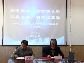 党委刘智广书记和旅顺中学王丽校长在签署协议、为教学实践基地揭牌