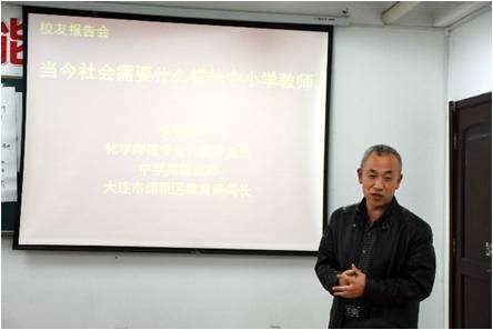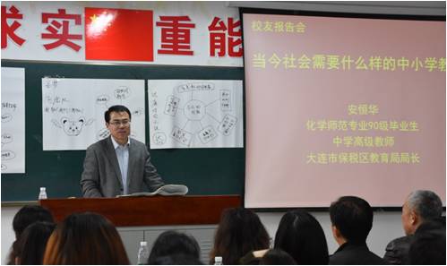 化学(师范)专业90届优秀毕业生、大连市保税区教育文化体育局局长安恒华应邀作“当今社会需要什么样的中小学教师”主题报告,党总支书记刘智广,足球分析论坛