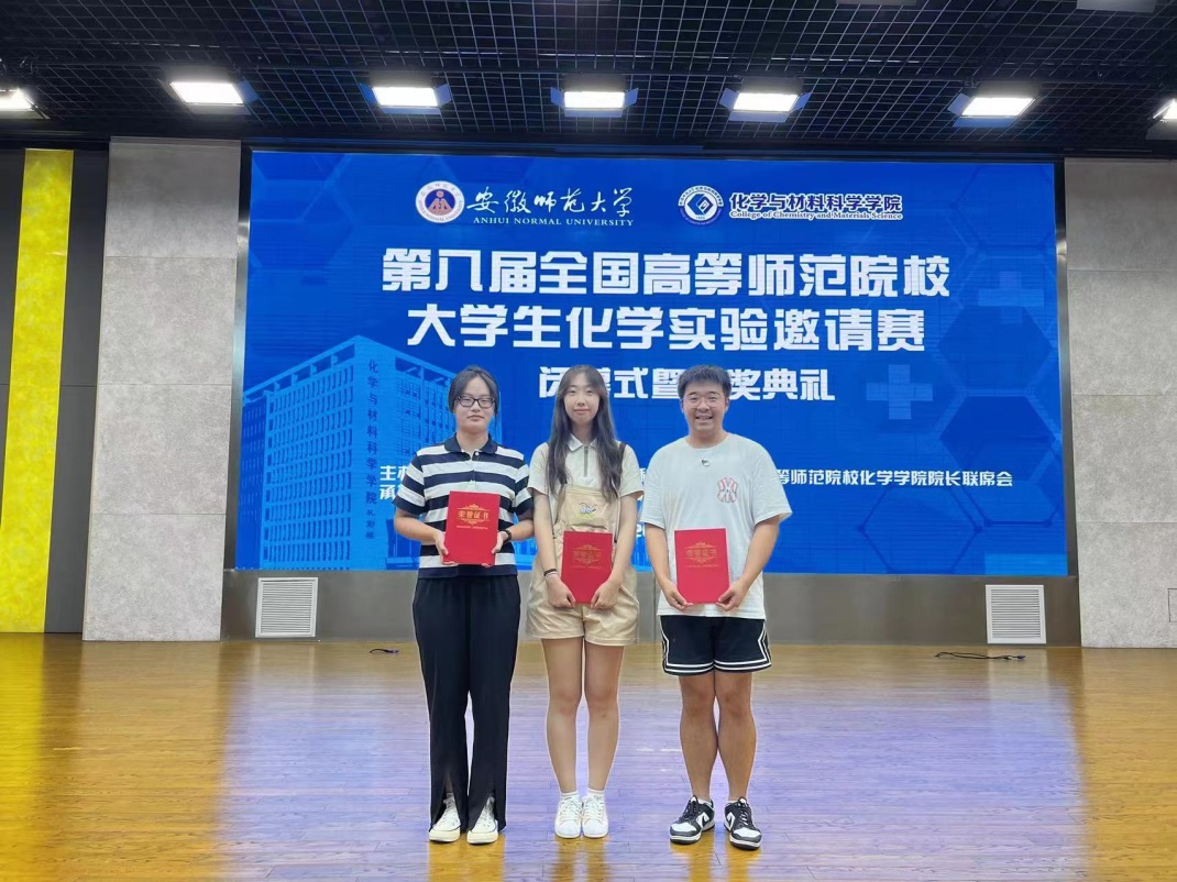 7月14日至16日,第八届全国高等师范院校大学生化学实验邀请赛在安徽省芜湖市安徽师范大学举行,我院教师杨广生、徐一鑫、赵莹莹、孙越、张治广等老师共同指导的2020级化学(师范)专业学生张俊杰、王佳和魏思涵三名同学分别荣获大赛二、二、三等奖。