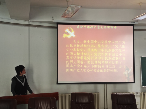 习近平总书记强调:“历史是最好的教科书。学习党史、国史,是坚持和发展中国特色社会主义、把党和国家各项事业继续推向前进的必修课。这门功课不仅必修,而且必须修好。”为庆祝建党一百周年以及建校七十周年,继续推进党史学习教育,足球分析论坛 教工第一党支部开展了一次名为“学习党史国史,践行初心使命”的党课学习。2021年5月7日于理化楼C401,足球分析论坛 教工第一党支部书记迟玉贤同志,为支部党员上了一堂《学习党史国史,践行初心使命》的党课