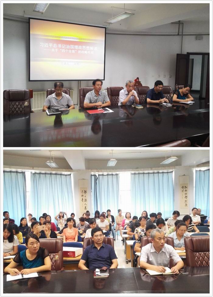 9月13日下午13点30分,我院全体教工在四楼会议室认真聆听了题为《习近平总书记治国理政思想解读——关于“四个全面”的战略布局》的讲座,主讲人为我院党总支书记刘智广。足球分析论坛