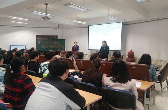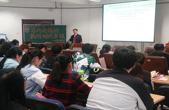 党总支书记刘智广老师以“学习两会精神,践行时代责任”为主题展开本期培训的第一讲。首先,刘书记以提问的形式带领大家思考两会召开的意义所在。随后,刘书记结合自身的经历向大家生动地解读了“旧小康与新小康”及“创新、协调、绿色、开放、共享”五大发展理念,并希望大家时刻保持高度的政治敏锐性,善于用政治的眼光分析观察形势、解决问题。最后,刘书记向大家分析了2017年政府工作报告的主要内容、2016年政府所做的八个方面的工作以及2016年经济社会发展所遇到的困难与险阻。刘书记通过具体实例告诉大家,“两会”离我们并不遥远,它关乎我们日常生活的每一个细节,它与我们每一个人都息息相关。