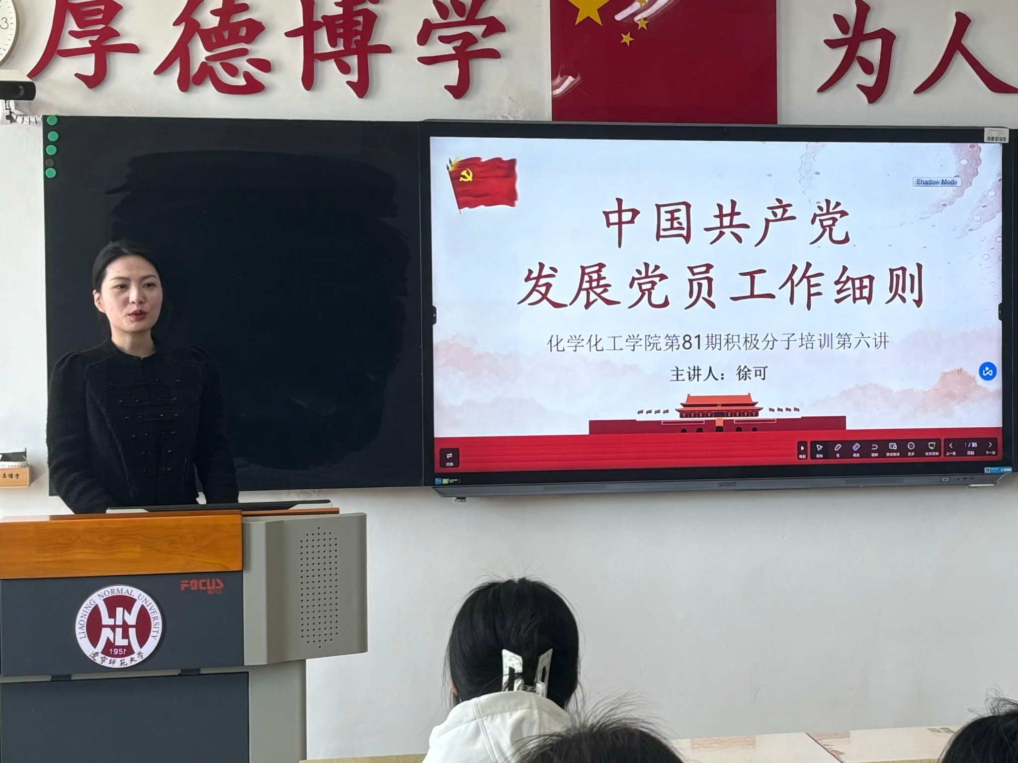 为规范党员发展流程,进一步保证党员队伍质量,4月21日,我院于理化楼C416组织开展第81期入党积极分子培训第六讲。本次培训由我院党委组织员徐可老师主讲,内容为《中国共产党发展党员工作细则》。
