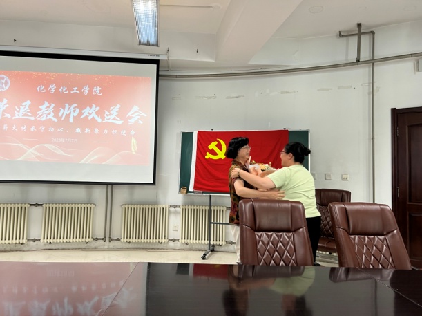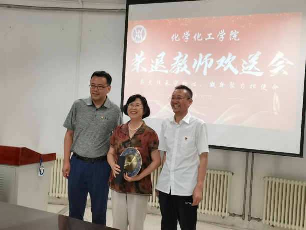 党委冯俊勇书记一道为石雷老师颁发了荣退奖牌和礼品,其他两位老师的奖牌和礼品分别由所在支部的支部书记代领,在场教师用热烈的掌声祝愿三位老教师退休快乐。