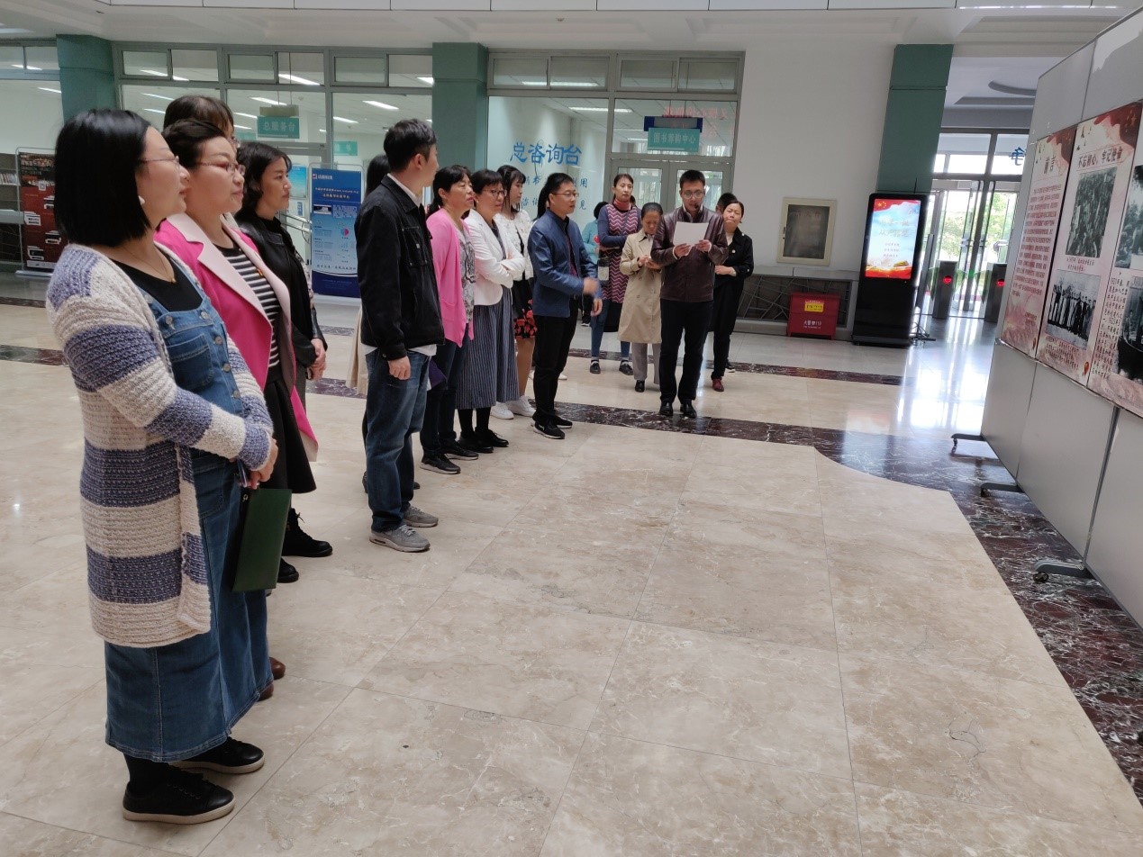 随后,大家观看了图书馆为庆祝中华人民共和国成立70周年举办的“不忘初心、牢记使命”的图片展,展出了从中国共产党成立到新中国成立期间的50幅珍贵的历史照片,多方面展现了中国共产党领导中国人民走过的艰辛历程和取得的辉煌成就。
