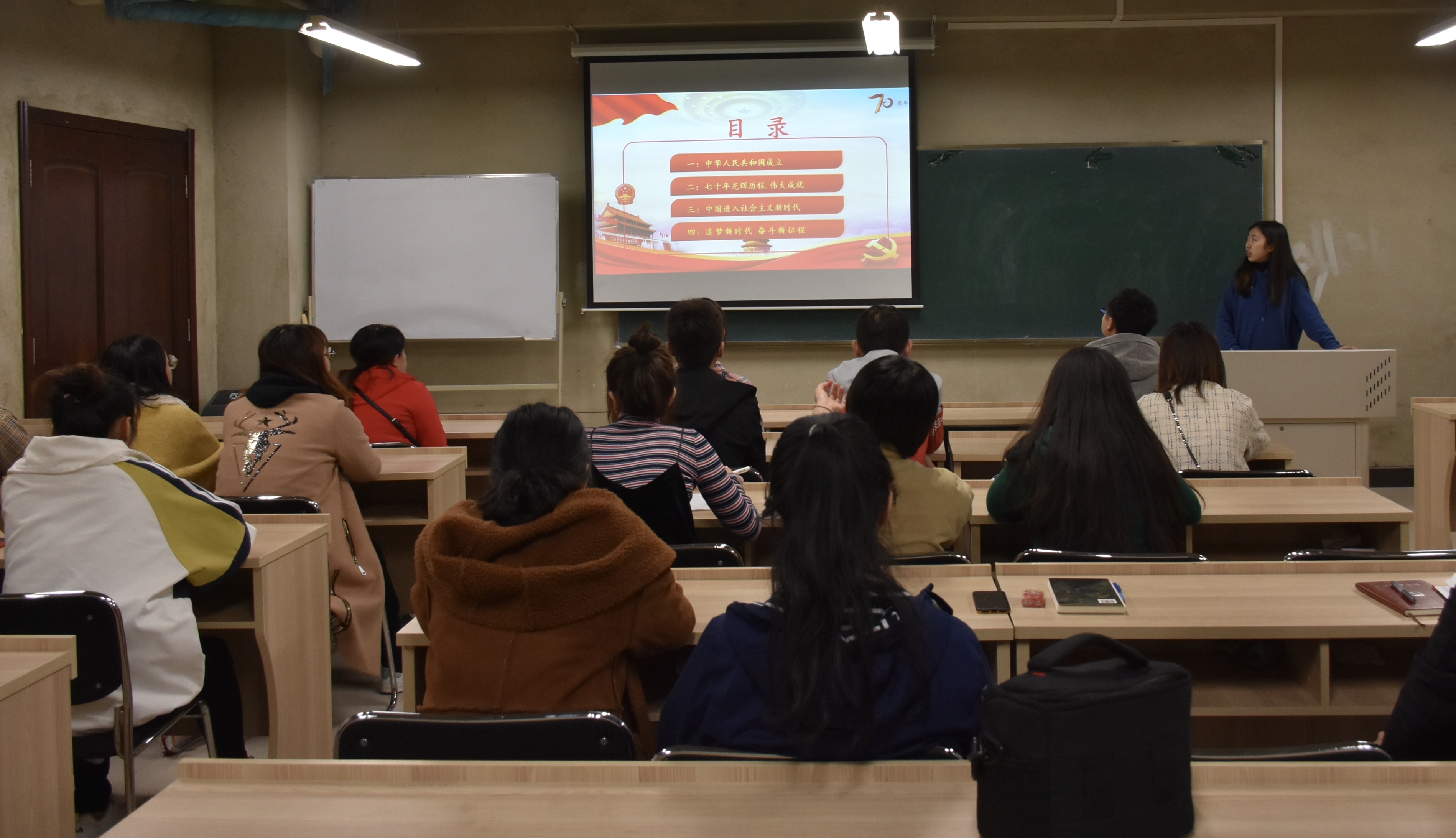2019年10月16日18:00,研究生第三党支部在理化楼B区106教室,由支部书记吕一新作题为“追梦新时代,奋斗新征程”的专题党课。支部成员纷纷发言,畅谈感想,最后大家一直认同新时代是奋斗者的时代,伟大的新时代,我们需要用习近平新时代中国特色社会主义思想武装头脑,统一思想和行动,努力增强学习本领,以新的精神状态和奋斗姿态,肩负起新时代的历史使命。