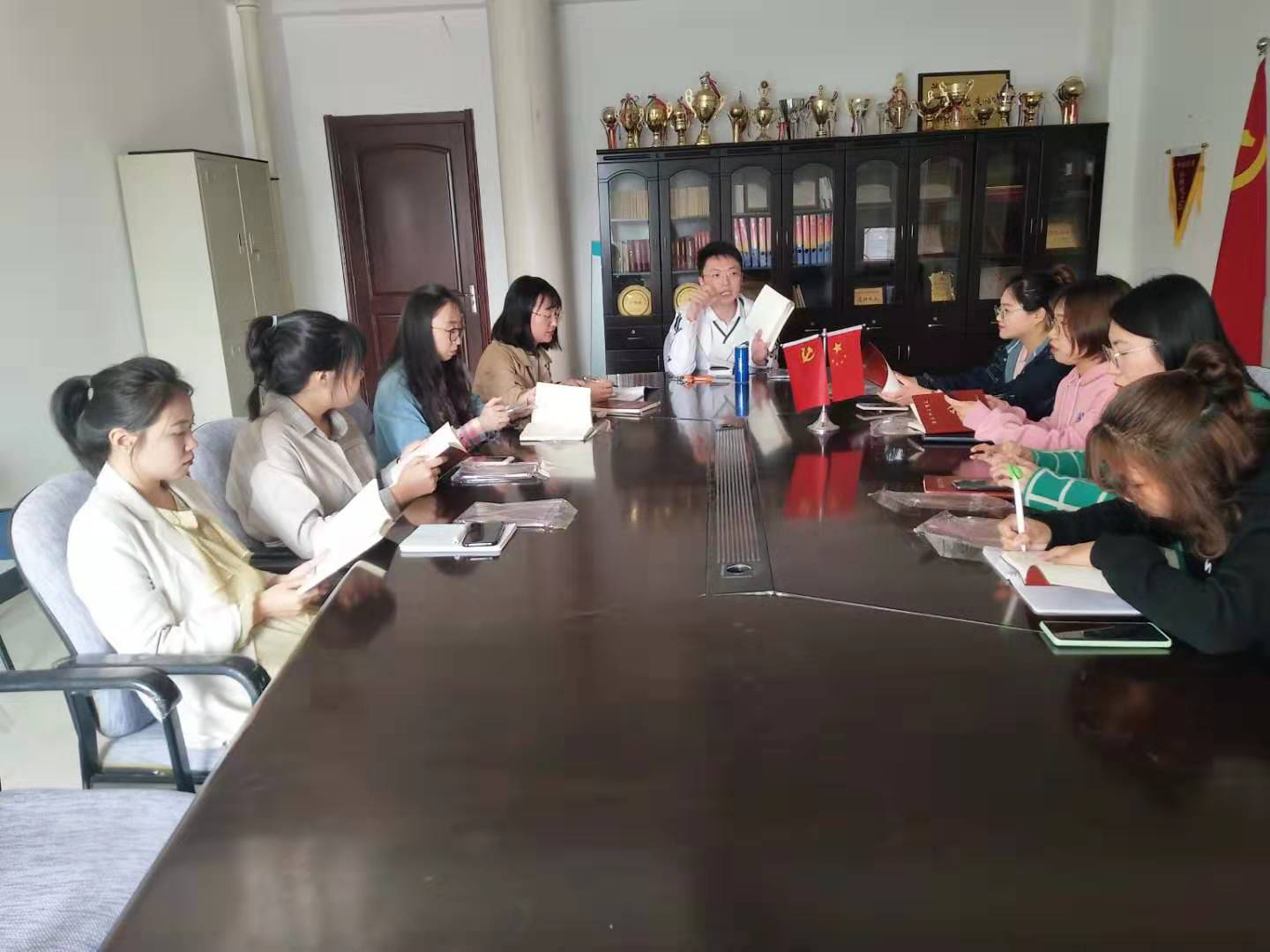 研究生第二支部于2019年10月16日晚18:00开展题为“不忘初心、牢记使命—学习优秀共产党员先进事迹”的党课,支部书记高歌向本支部党员推荐书籍《“不忘初心、牢记使命”优秀共产党员先进事迹选编》并介绍王瑛、张富清、黄文秀等优秀共产党员的先进事迹。通过学习,本支部党员同志们能够直观感受到优秀共产党员淡泊名利、艰苦奋斗、爱国奉献、秉持初心、担负使命以及忠诚于党和人民等优秀品质,同时能够找到与优秀共产党员之间的差距,认清自身不足之处,及时改正缺点、解决问题。会上支部书记鼓励支部党员将学习优秀党员的先进事迹与学习贯彻习近平新时代中国特色社会主义思想结合起来,以先进典型为当榜样,坚定理想信念,对党忠诚、担当作为,努力成为一名新时代中国特色社会主义思想的忠诚践行者。