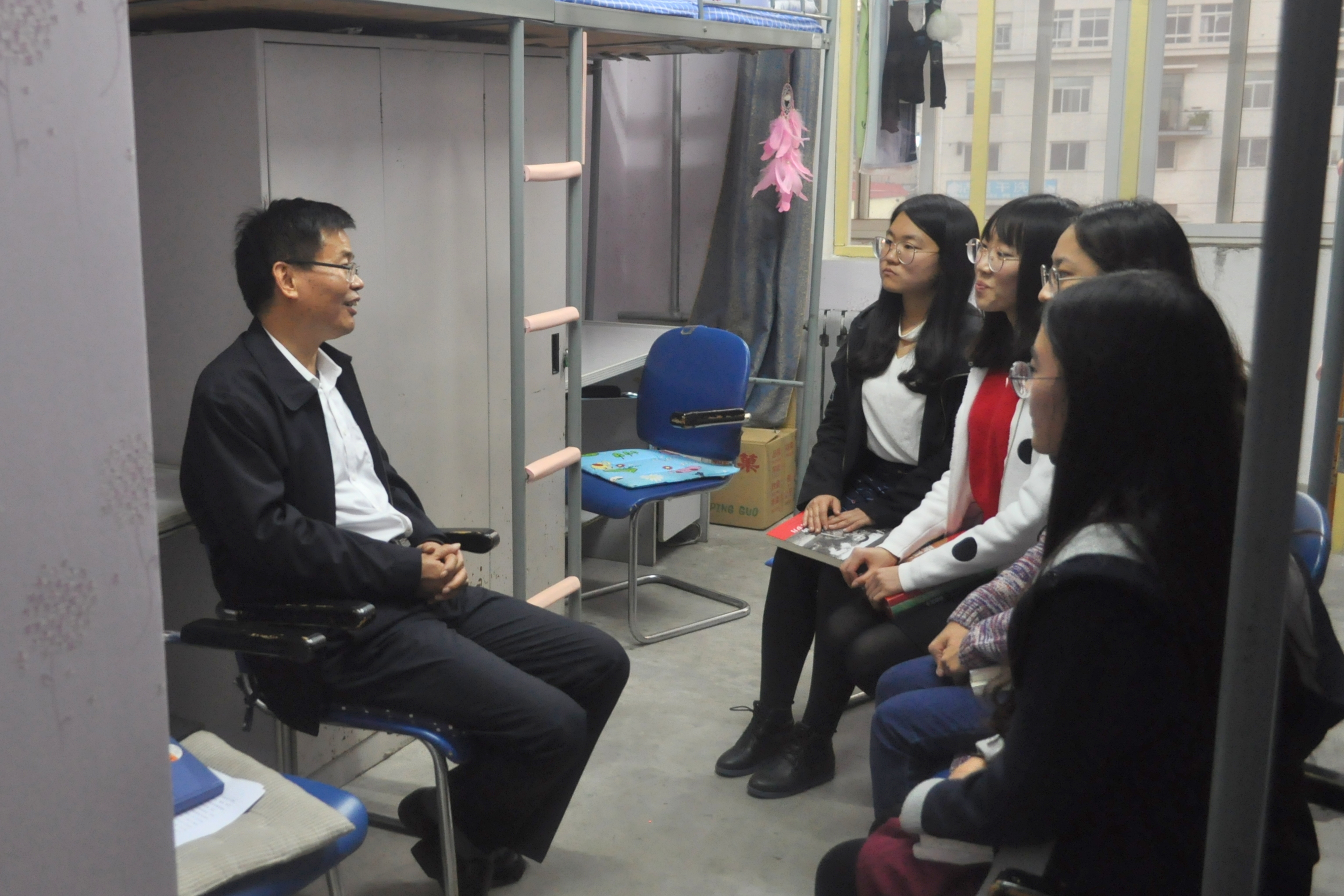 10月18日下午,岳崇兴副校长走进后大学生公寓城四公寓416学生寝室,与足球分析论坛