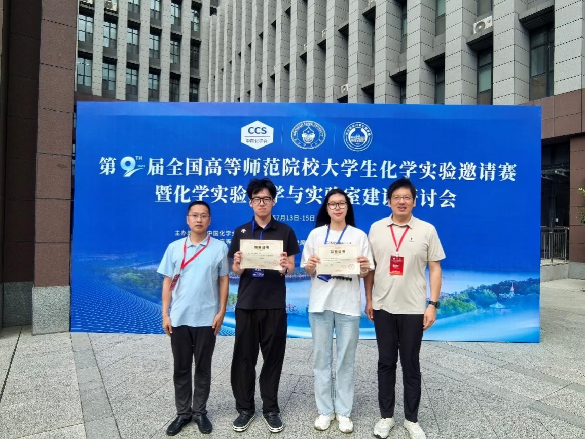 第九届全国高等师范院校大学生化学实验邀请赛于7月13日至15日在东北师范大学成功举办。经过激烈角逐,我院2022级化学(师范)专业王梓涵、贾明燃两位同学双双斩获大赛一等奖,彰显了我院在化学专业人才培养方面的突出成效。