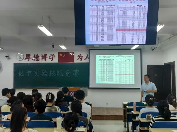 第十届本科生基础化学实验技能竞赛”,在5月14日和6月中旬分别完成了笔试初赛和实验决赛。根据比赛成绩确定了30人名单。在确认名单后,经实验教学中心的多位老师的指导下,参赛学生进行了系统的理论知识和实验操作培训,最终取得佳绩。