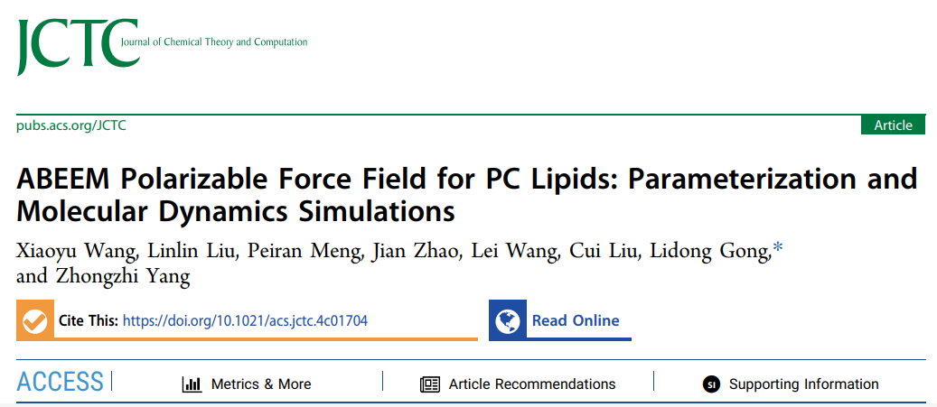 宫利东教授课题组JCTC: ABEEM可极化力场在PC类脂质中的应用:参数化和分子动力学模拟